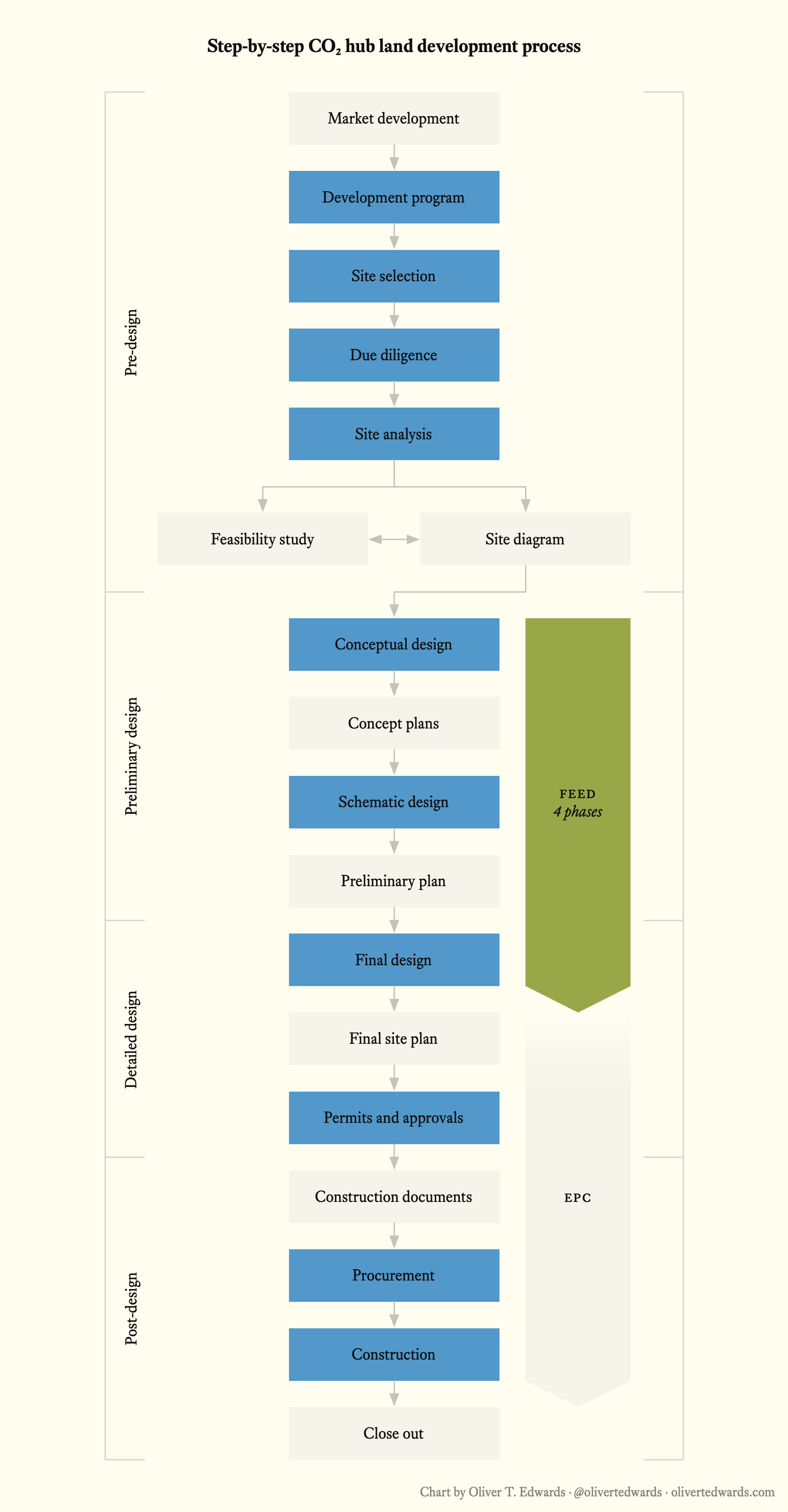 This article, though very much a work in progress and somewhat enumerative, is my own view on a greenfield CO₂ hub development process based on my industrial land development experience and discussions with cryogenic engineers.