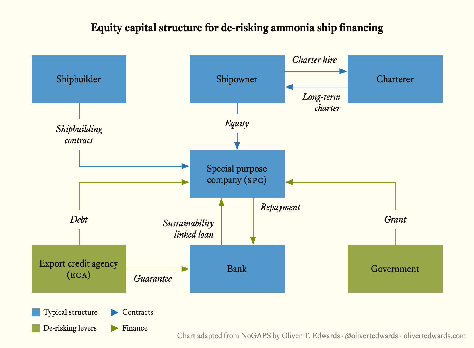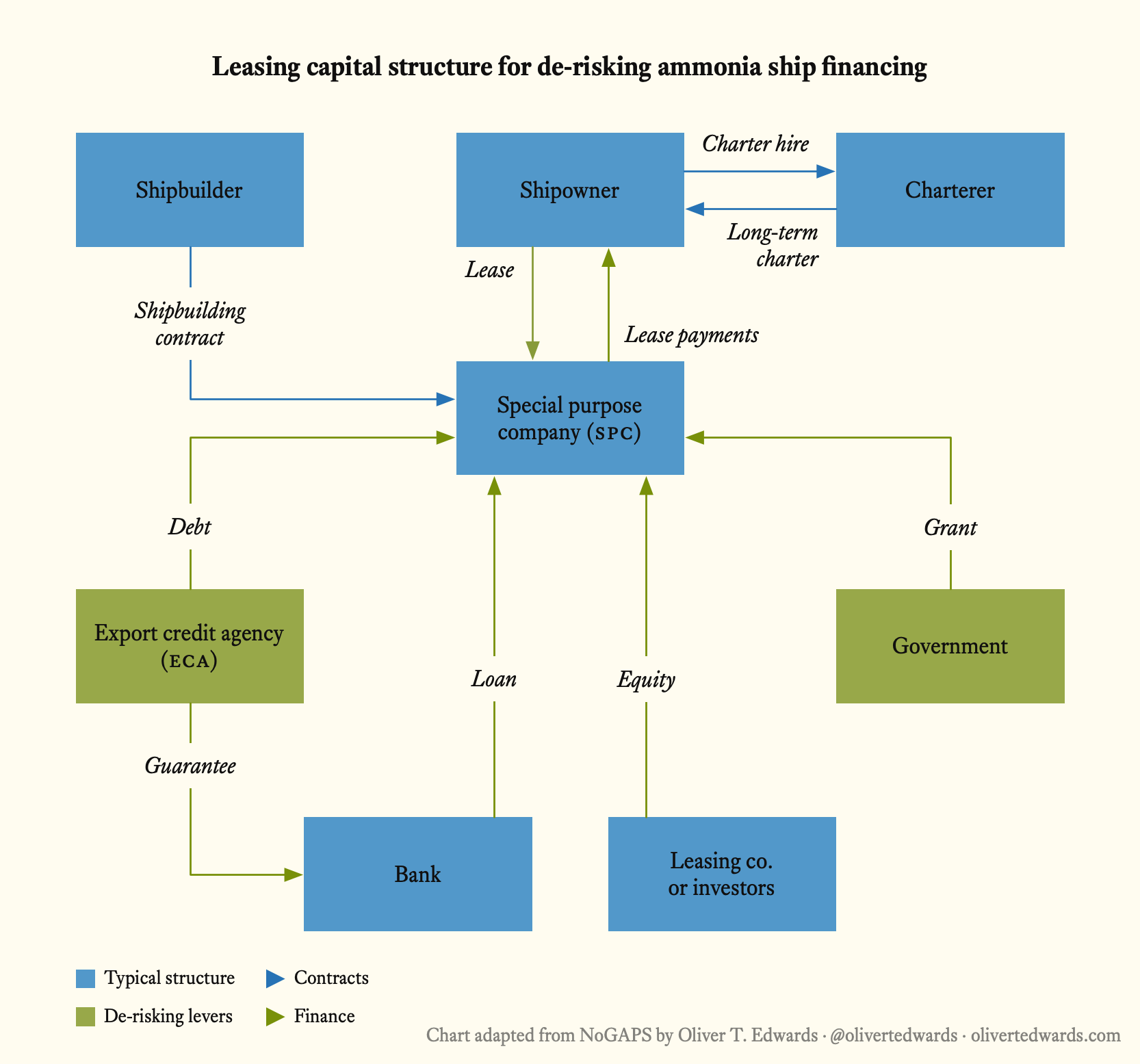 How do these levers work in practice? Let’s look at two capital structures proposed by the NoGAPS project for deploying ammonia-powered ships.
